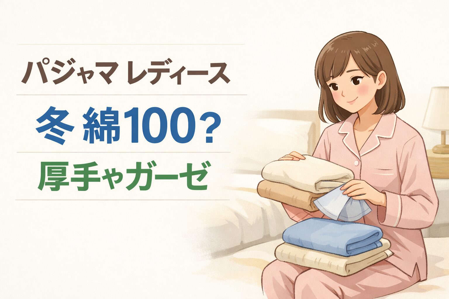 結論からいうと、冬のレディース綿100パジャマは、綿100という表示だけで選ぶのではなく、厚手、ガーゼ、接結、キルト系など生地の違いまで見て選ぶのが失敗しにくいです。