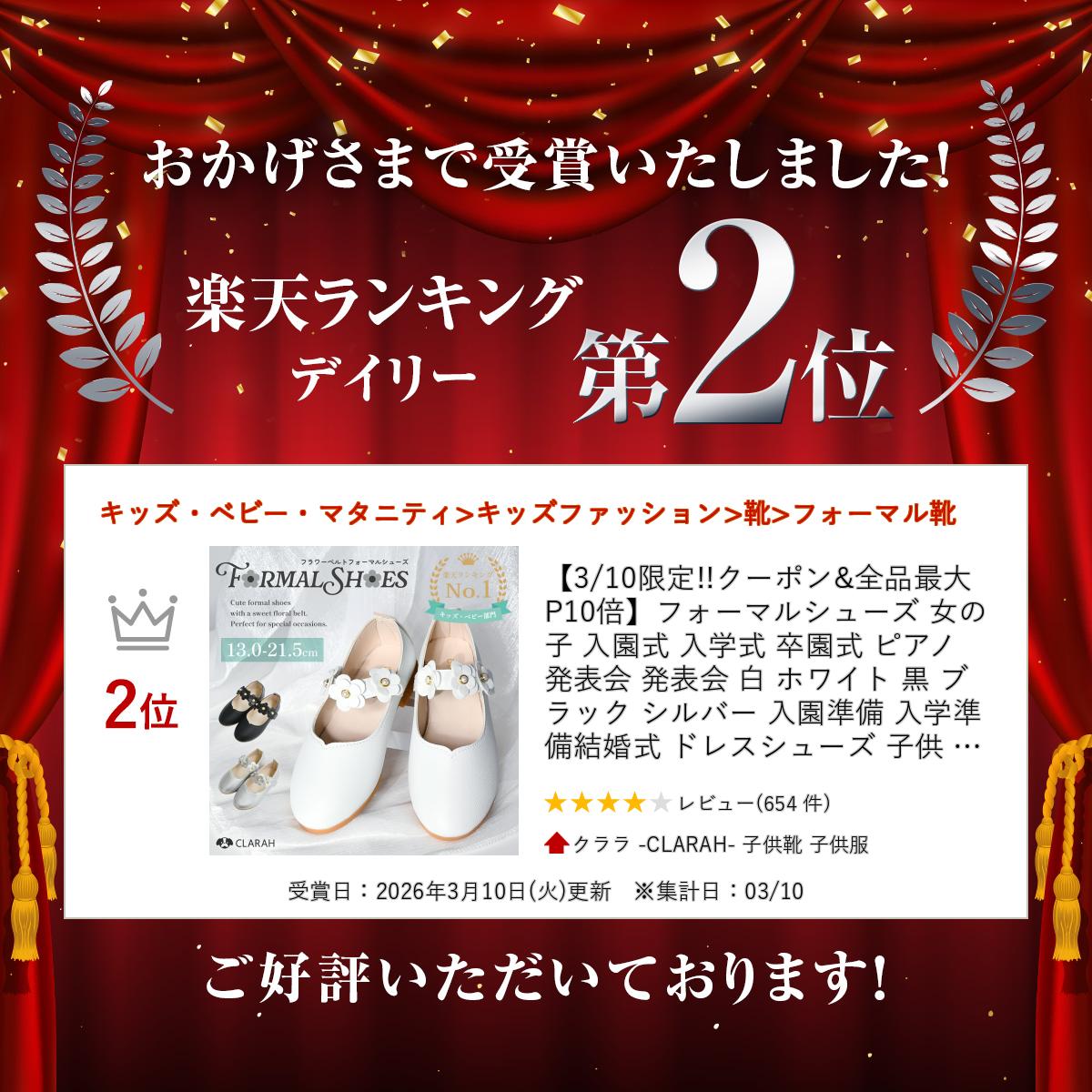 ■こちらの商品は宅配便コンパクト(ヤマト運輸)での配送でございます。かかとを少し折り曲げて梱包いたします。 折り曲げ不可の方は、袋での発送希望。をご選択下さいませ。 袋梱包の場合の配達中の型崩れに関しましては、保証できかねますのでご了承下さいませ。 ※一部地域(北海道・青森県・岩手県・宮城県・秋田県・山形県・福島県)の方は、佐川急便(袋梱包)での発送でございます。 ----------------------------------- 当店人気のフォーマルシューズを CLARAH仕様にリニューアルデザイン♪ ----------------------------------- ●COLOR:WHITE/BLACK/SILVER ●MATERIAL:PU ●SIZE 21:内寸-13cm 22:内寸-13.5cm 23:内寸-14cm 24:内寸-14.5cm 25:内寸-15cm 26:内寸-15.5cm 27:内寸-16cm 28:内寸-16.5cm 29:内寸-17cm 30:内寸-18cm 31:内寸-18.5cm 32:内寸-19cm 33:内寸-19.5cm 34:内寸-20cm 35:内寸-20.5cm 36:内寸-21.5cm ●MADE IN CHINA ●関連キーワード コストを抑えてもデザインにはこだわりたい! とっておきのプチプラ&キュートデザイン♪ お洒落…