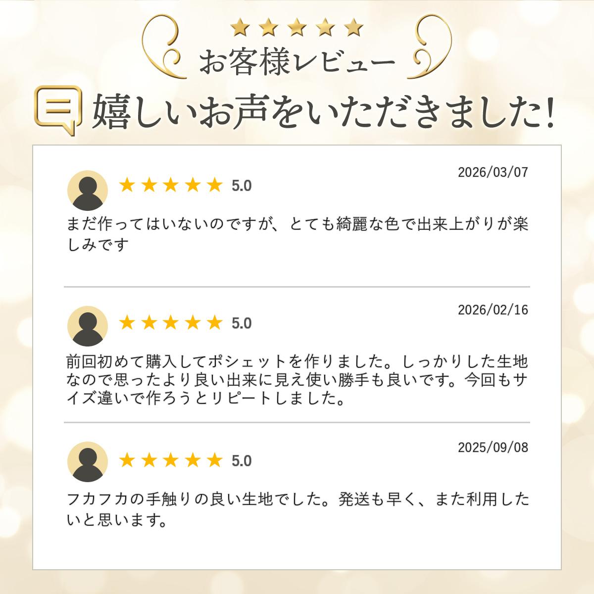 素材表 ナイロンオックス 100% 裏 ポリエステル 100% 中綿 ウレタンスポンジ 100%生地巾約135cm生地の種類キルティング柄無地生地の厚み厚手針と糸ミシン針14号・ミシン糸60番普通糸用途バッグ、タブレットケース、などご注文単位30cm以上10cm単位(数量3は30cm)配送方法40cmまでは追跡可能メール便290円 60cm以上またはお届け日時指定ありは宅配便商用利用可注意事項◆この生地は水通しは不要です。 ◆汚れた場合は、やわらかい布で拭いてください。 ◆お洗濯の場合は 永くご愛用いただくために、手洗いまたはネットに入れて 弱水流でお洗濯をおすすめします。 ◆乾燥について タンブラー乾燥は縮むおそれがありますのでお避けください。 ◆当店ではご注文の長さに対して少し長めに裁断しておりますが 水通しの縮みを考慮した裁断はしておりませんので、 余裕をもった長さをご注文いただきますようお願い申し上げま す。 ◆お使いのモニター環境によって実物とお色に差が生じることがあります。 どうぞご理解くださいませ。135cm巾 ≪ナイロンオックス ボンディングキルト≫ダブルステッチ【10cm単位】カラーは6色 関連商品はこちら【普通地用】家庭用ミシン糸(フジックス...300円家庭用ミシン針326円 キルティング生地