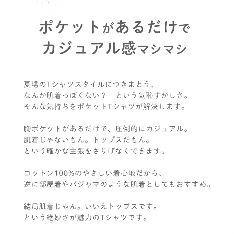 メンズファッション ポケット半袖tシャツの紹介 シンプルな無地のスタンダードな綿Tシャツはいつだって欠かせない。洋服や衣類を選ぶにあたって、通気性、吸水性は優れた天然素材綿100%の肌にやさしい、柔らかい生地だから、静電気が起きにくく、毛玉になりにくいティーシャツです。かるい着心地で敏感肌さんにも自信をもっておすすめできる半袖シャツです。 カジュアルな普段着はもちろん、肌着、下着、アンダーウェア、ナイトウェア、パジャマなど全般のデイリーウェアとして仕事やビジネスのオフィスカジュアルに取り言えれるのもラフでカッコイイtシャツです。レイヤードや重ね着のスタイルや、あえて大き目のサイズを選びビックシルエットを取り入れやすい半そでシャツです。 襟ぐり狭めのラウンドネックのtシャツで、生地もしっかりと厚いので透けにくい、カジュアルウェアとしてもビジネスウェアとしても一枚着でもしっかりとした印象を与えてくれる、クールでさわやか、お洒落で可愛い、清潔感のあるすずしいはんそでカットソーです。リーズナブルでポイント消化にもぴったり。配送料込みもウレシイ。おまけにカラー交換無料、サイズ交換無料。安心してお買い求めいただけます。 おすすめポイント ■綿100%(コットン100%)でふんわり柔らかい触り心地、肌着としても着られる。敏感肌で痒くなりやすい方にも安心して着て頂ける肌に優しい、かるい着心地のふわ…