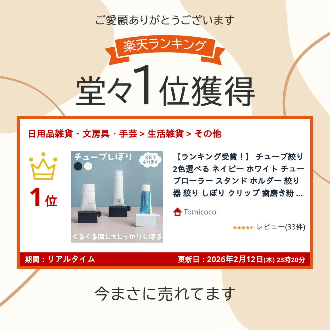 【チューブを最後まで絞れる】歯磨き粉などのチューブ製品の量が少なくなってくると最後まで出し切れなかったり、出すのに力が必要だったり…そんなストレスを解消します!この商品にチューブをセットして横の持ち手を回すだけでチューブが絞られ、中身を無駄なく使用することができます。節約・エコにも繋がる便利アイテム!【スタンド型】下面が平になっていて自立するタイプなので、装着したチューブも立てた状態で保管できます。チューブスタンドとして整理にもなり、使う時に使いたい分だけ回して中身を出して使えます。下面にはシリコンの滑り止めもついているので、滑りやすいシンクなどの水回りでも使いやすいです。【すっきりオシャレ】表面がつるっとしたシンプルな構造と、落ち着いた色合いなのでお部屋や洗面所にも馴染んで使いやすいデザインです。ネイビー(紺)とホワイト(白)のカラーがかわいいです♪【使用用途】様々なチューブ型の製品に使用できます。歯磨き粉 洗顔 ハンドクリーム 軟膏 わさびなどの調味料 下地・ファンデーションなどの化粧品 絵の具 など※パッケージが分厚いチューブは入らない、または最後まで絞るのが難しい可能性があります。【素材】ABSシリコン【サイズ】約7×4cm重量:約50g※日本語取扱説明書、撮影用小物類などは付属しておりません。※簡易包装でのお届けとなります。※モニターにより色合いが若干違いが生じる場合がご…