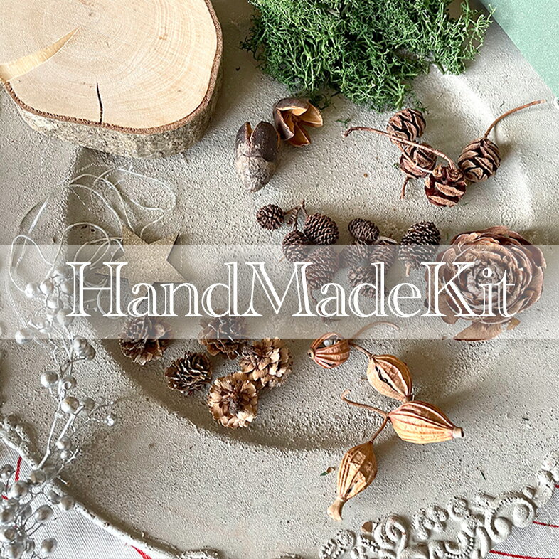 広葉樹の切り株に乗ったミニツリーを作ります。 フォームを削ってモスや木の実を飾り、仕上げに細いシルバーのワイヤーをぐるぐる巻きつけて。 シンプルな大人のクリスマスアイテムとして飾って頂けます。コンパクトサイズでも手軽にクリスマス感を演出できるミニテーブルクリスマスツリー。大きなツリーを置けないお部屋や、飾り付けや収納に手間を掛けたくない人にもおすすめのアイテムです。寝室や子供部屋などにも気軽に飾れるコンパクトさが魅力です。 でもどうやって作るの? と疑問に思う方、今回はその秘密を明かしちゃいます。 フォームを削ってツリー型を作ったら、モスを貼って、木の実やキラキラワイヤー、トップスターをつけて、あとは切り株にミニツリーを接着して完成です。 本当に簡単にできちゃうテーブルミニツリー。お子さんと一緒に作ってみませんか? 制作時間は1時間弱。 【手作りキットについて】 手作りキットは完成品ではありません。 お客様ご自身でお作りいただく商品です。 ドライフラワーは本物のお花や葉物を乾燥させた自然素材です。 そのため、大きさや形はそれぞれ異なります。多少の割れや欠けがある場合もあります。 お客様のご覧いただいている画面や設定により、実際のお花の色と異なって見える場合があります。 ご了承の上、ご購入くださいますようお願い申し上げます。 【完成サイズ】;サンプル採寸約 直径10cm x 高さ2…