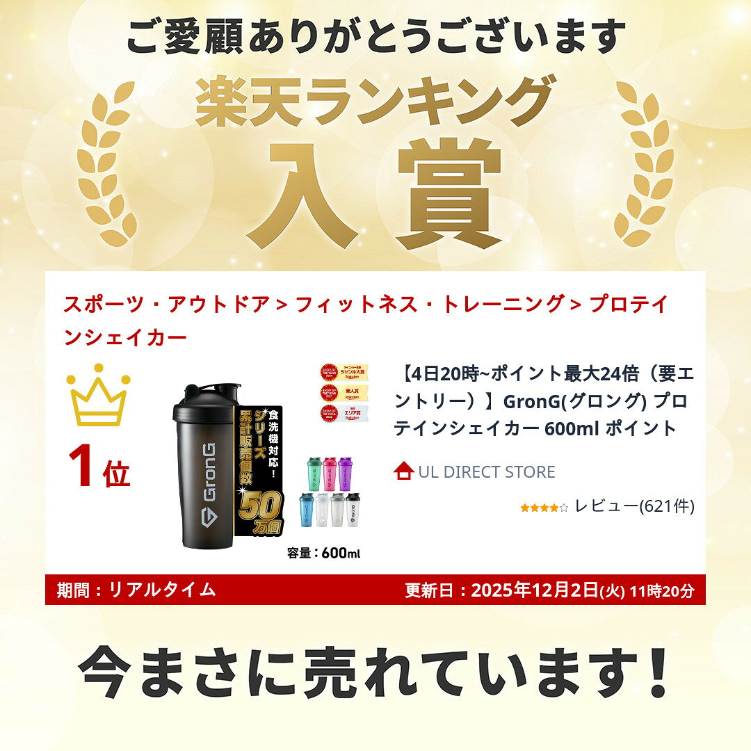 ※限定クーポン獲得&エントリーの受付は、12月4日(木)20:00より開始いたします ※最大のポイント倍率は商品によって異なります プロテインやアミノ酸ドリンクを飲む際に便利な「プロテインシェイカー」です。 【最大目盛り】600ml/20oz 【サイズ】(約)21.5cm×9.5cm×9.5cm ※最長辺で計測 【本体重量】(約)113g 【材質】本体/ポリプロピレン、蓋・キャップ/ポリエチレン 【耐熱】60℃ 【使用方法】 1.シェイカーに水や牛乳などを入れます。 2.プロテインなどの粉末を入れます。 3.蓋をしっかりと閉めます。 4.シェイカーをよく振って溶かします。 ※軽く蓋を押さえてください。振って溶かした後は速やかにお召し上がりください。 【取扱い上の注意】 ※シェイカーを洗ってからご使用ください。 ※冷凍庫で中身を凍らせると変形、破損の恐れがあります。 ※電子レンジで使用しないでください。※最大のポイント倍率は商品によって異なります 選べるカラーバリエーション