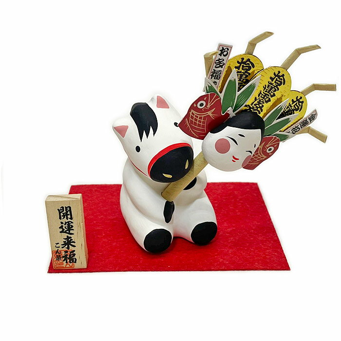 迎春張子 熊手持ち午 2026年午年干支飾り 手づくり招福張り子 午歳張子飾り 丙午(ひのえ・うま)歳 干支置物 正月飾り 開運来福 金運招来 お多福集め こん築 お歳暮 お年賀 贈り物 馬張り子飾り 縁起物 うま置物 運気上昇 ウマ置物