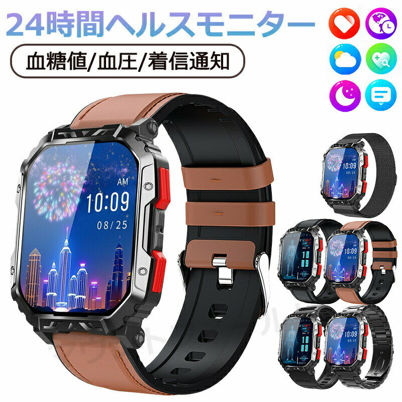 【2025最新型 工場直営 品質保証】スマートウォッチ 血圧測定 尿酸値 血糖値測定 スマート ウォッチ 日本製センサー 血中酸素 血糖値 24時間体温測定 音楽プレーヤー IP68防水 2.1インチ大画面 腕時計 高精度心拍数 呼吸率 睡眠 スマートウォッチiPhone/Android対応