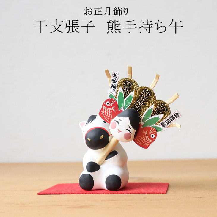 2026年 干支張子(午) 熊手持ち午 お正月飾り 干支 首振り 張子 置物 うま 馬 コンパクト 張子 置物 開運 招福 縁起物 お正月飾り