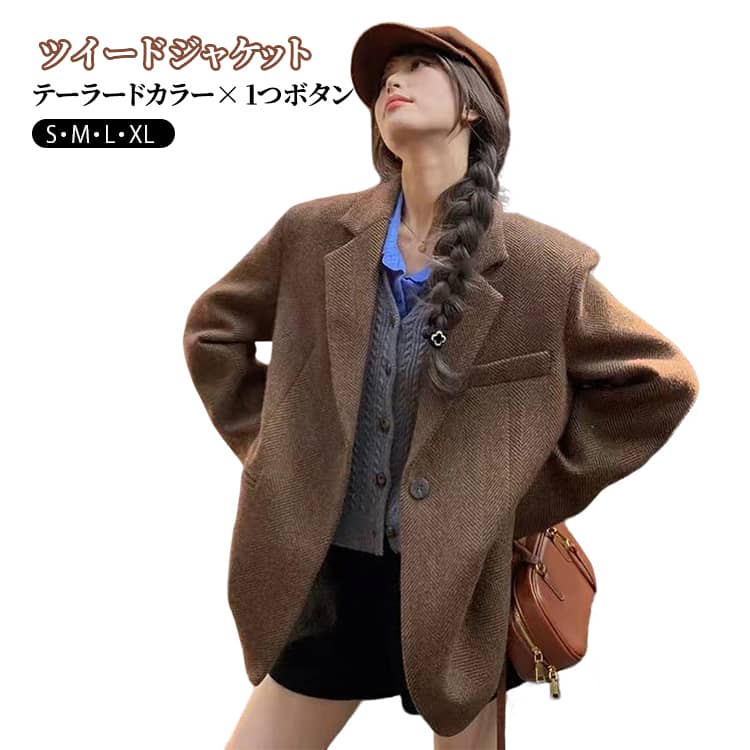 テーラードカラー レディース ジャケット 入学式 秋 冬 ジャケット 韓国風 レトロ 1つボタン アウター ツイード フォーマル オフィス 通勤 セレモニー ジャケット 入園式 卒園式