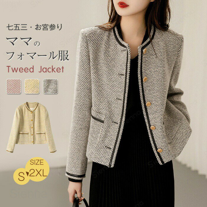 ジャケット ツイード 大きいサイズ レディース きれいめ ショート ノーカラー ツイードジャケット 卒業式 入学式 ママ 母 フォーマル 入園式 ミセス シニア フォーマルジャケット 春 秋 冬 50代 40代 30代 60代 結婚式 お宮参り 顔合わせ 謝恩会 同窓会 セレモニー アウター