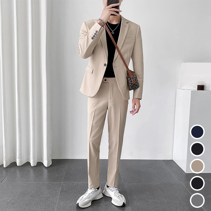 全5色 メンズスーツ ビジネススーツ カジュアルスーツ 2点セット 無地 シンプル 上下セット ネイビー ブラック グレー パーティー 通勤 通学 結婚式 礼服 フォーマル ジャケット ロングパンツ 紳士服 二次会 無地 セレモニースーツ 韓国風 長袖 卒業式 送料無料 S M L XL 2XL