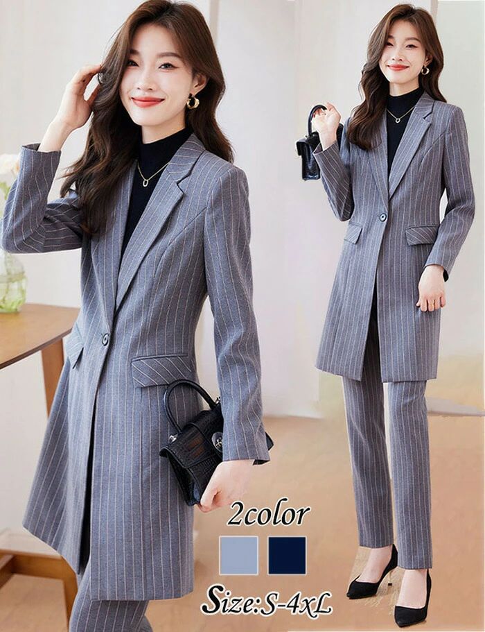 【送料無料】スーツ ビジネス セットアップ スーツ4点セット ビジネススーツ レディース 入学式 卒業式 入園式 セレモニー スーツ ママ 30代40代 50代 リクルート パンツスーツ スカートスーツ洗える 通勤 ブラック ネイビー ストライプ柄 S-3XL スーツ大きいサイズ