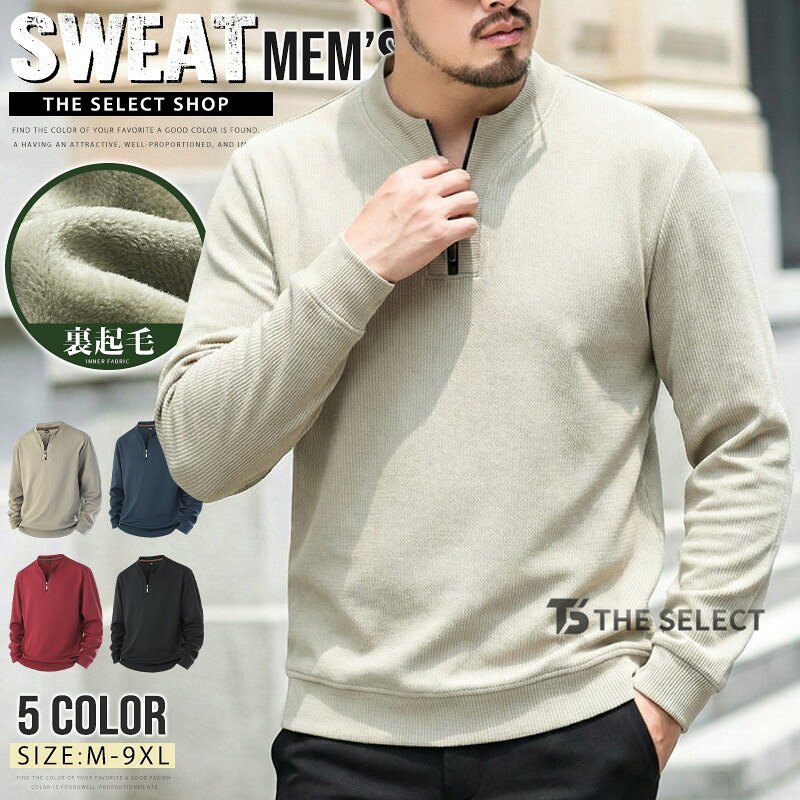 【2点で送料無料】ハーフジップ トレーナー メンズ スウェット 裏起毛 微起毛 トップス 長袖 トレーナー プルオーバー メンズトレーナー トップス ゴルフウェア 防寒 インナーシャツ 暖かい カジュアル あったか ルームウェア 秋冬 冬物 冬服 スポーツ