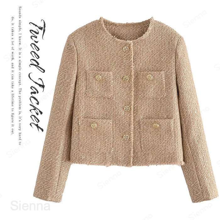 ツイードジャケット レディース ジャケット ノーカラー ツイード 長袖 羽織り ツイード風 春秋 秋冬 アウター セレモニージャケット スーツ ママスーツ フォーマルスーツ ライトアウター 春アウター ショート ゴールドボタン 裏地付き 華やか エレガント トレンド 洗える