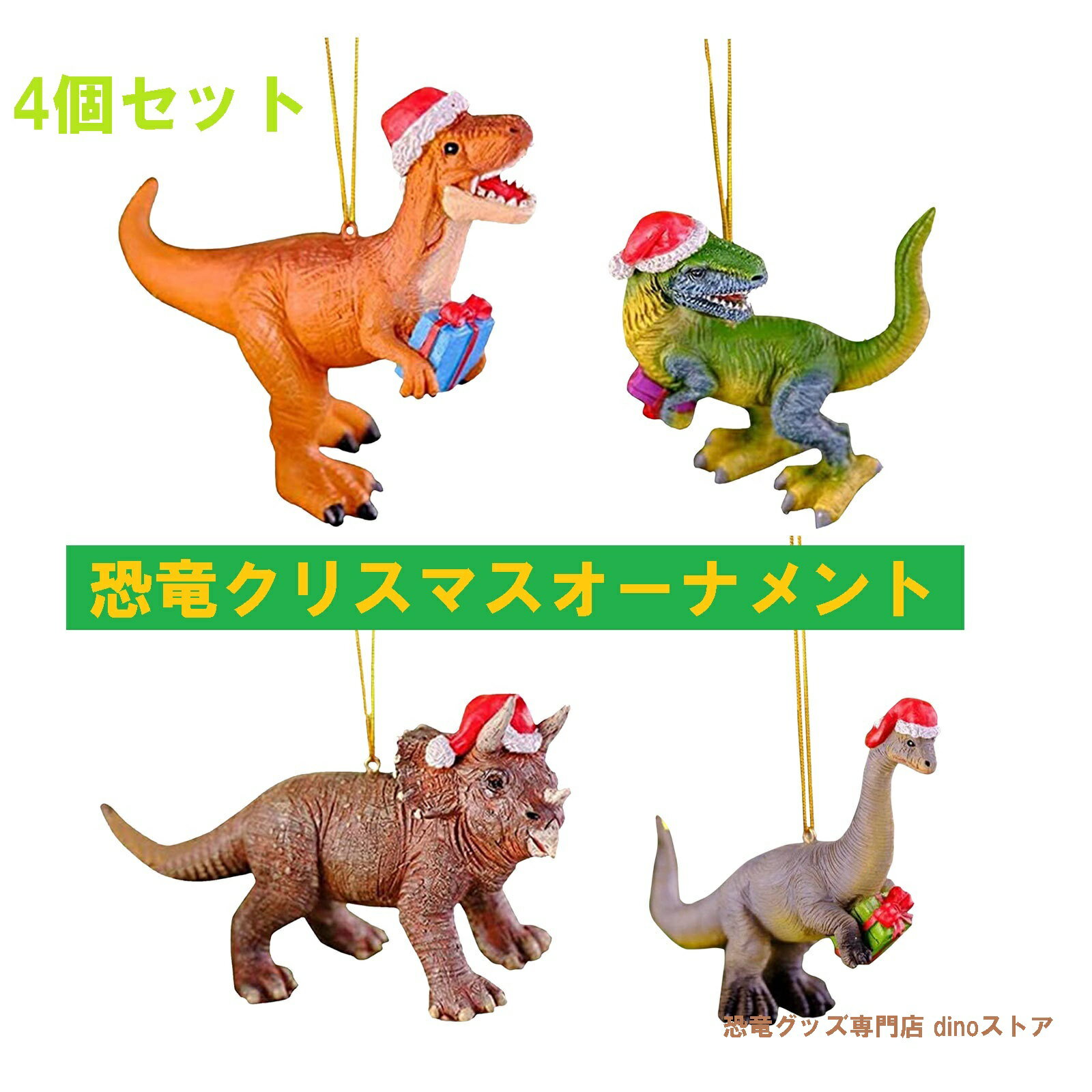恐竜 雑貨 クリスマス オーナメントセット デコレーション クリスマスツリー クリスマス会 飾り 装飾品 ストラップ 4個セット 掛け飾り パーティー ひも付き サンタクロース ダイナソー プレゼント おもちゃ dz053