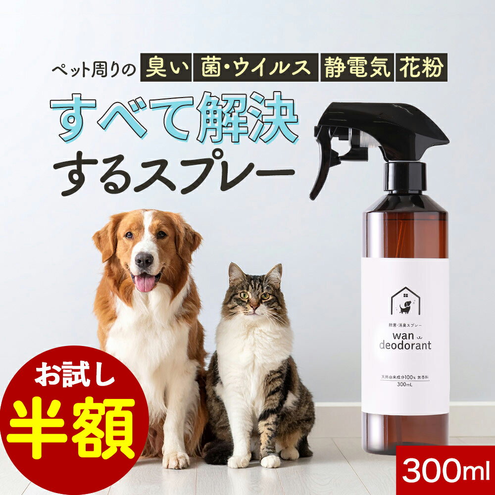 【お試し半額セール!】ペット 消臭スプレー ペット周りの 臭い 菌 ウイルス 静電気 花粉 すべて解決するスプレー wan deodorant 300ml 犬 猫 除菌スプレー 除菌 おしっこ うんち 消臭 消臭剤 トイレ 直接かける ゴミ箱 送料無料 レビュー特典
