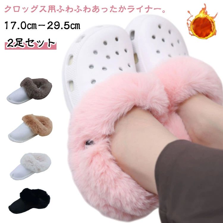 クロックス 防寒 スリッポン 冬用 毛足長め 裏ボア あ 暖かい スリッパ インソール フェイクファー 2足セット ライナー ふわふわ