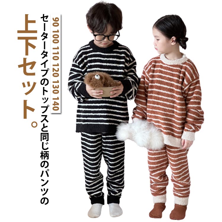 子供服 もこもこ 可愛い ふわふわ 女の子 男の子 長袖 上下セット ボーダー柄 パジャマ 秋冬 キッズ あったか ルームウェア 部屋着 寝間着 ジュニア 防寒 可愛い 送料無料