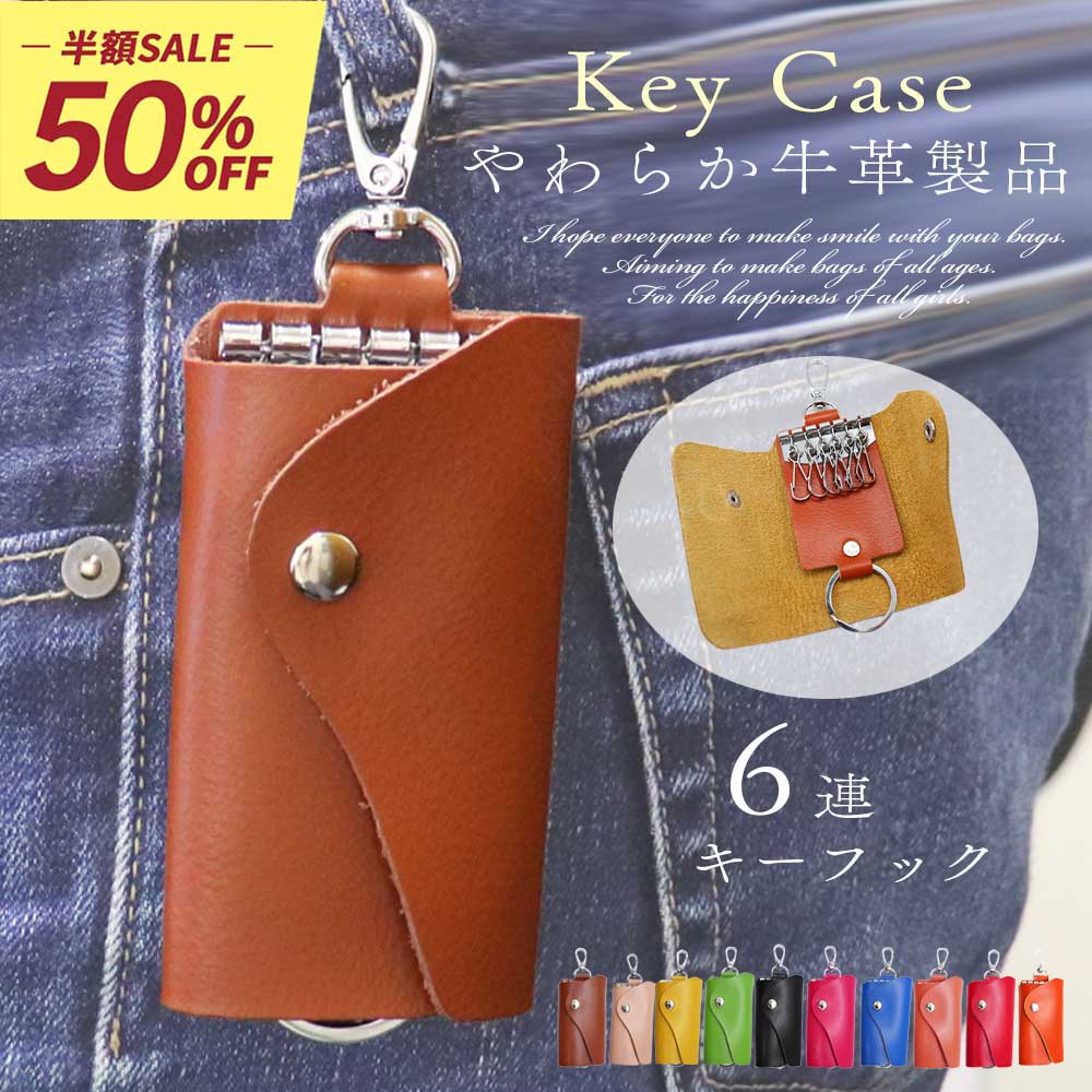 【当店全品半額クーポン!お買い物マラソン期間中!】 【送料無料】 キーケース 牛革 本革 革 レディース メンズ カギ 鍵 キー キーフック 6連 シンプル コンパクト 機能的 やわらかい 軽い 軽量 収納 記念品 贈答品 プレゼント 卒業式 卒園式 入学式 入園式 新生活