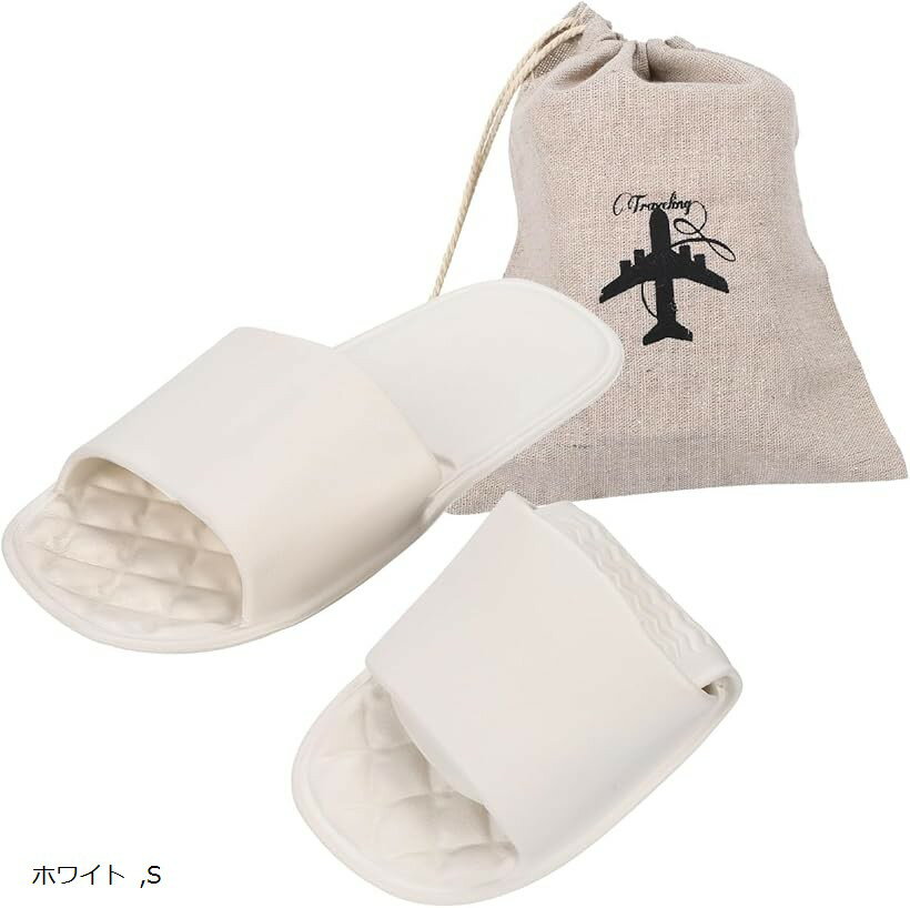 折りたたみスリッパ 携帯スリッパ 滑り止め 持ち運び 洗える 収納袋付き トラベル 旅行 機内 室内 学校 飛行機 車 軽量 コンパクト (ホワイト, S)