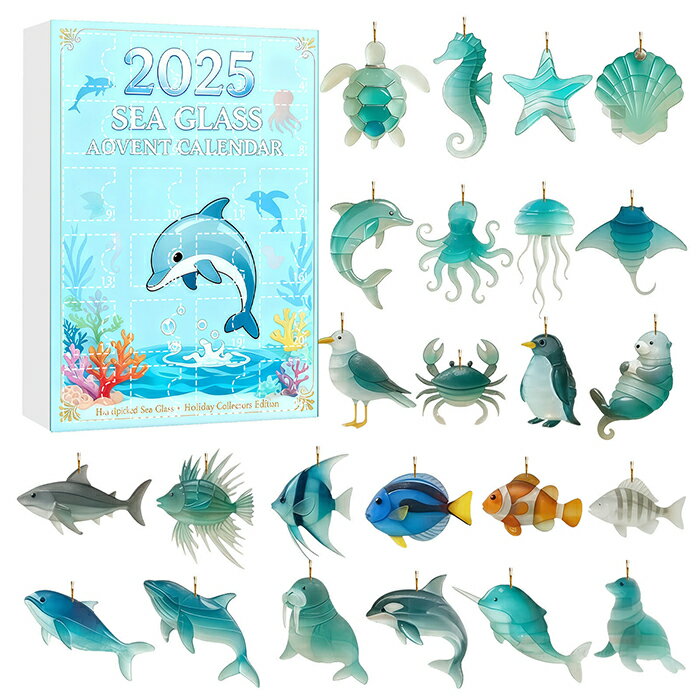アドベントカレンダー クリスマス 2025 2026 カウントダウン 24日 24個 魚 さかな かめ 亀 クリスマスツリー ツリー飾り アクリル オーナメント セット カレンダー 飾り 小物 かわいい 装飾 飾り付け おしゃれ 人気 かわいい クリスマス Xmas プレゼント ギフト
