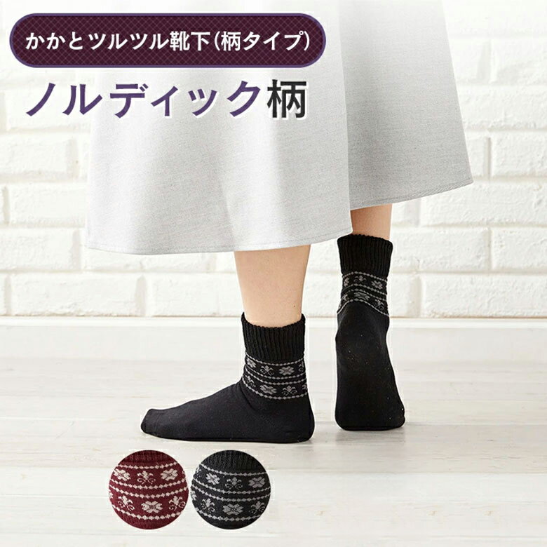 【太陽ニット かかとツルツル靴下 毛混】(ノルディック柄)かかとクリームいらずあったか×安心×楽チンのかかとケア かかとつるつる かかとガサガサ ひび割れ かかと保湿 角質除去 かかと靴下 冷え 【2足までメール便可】★746