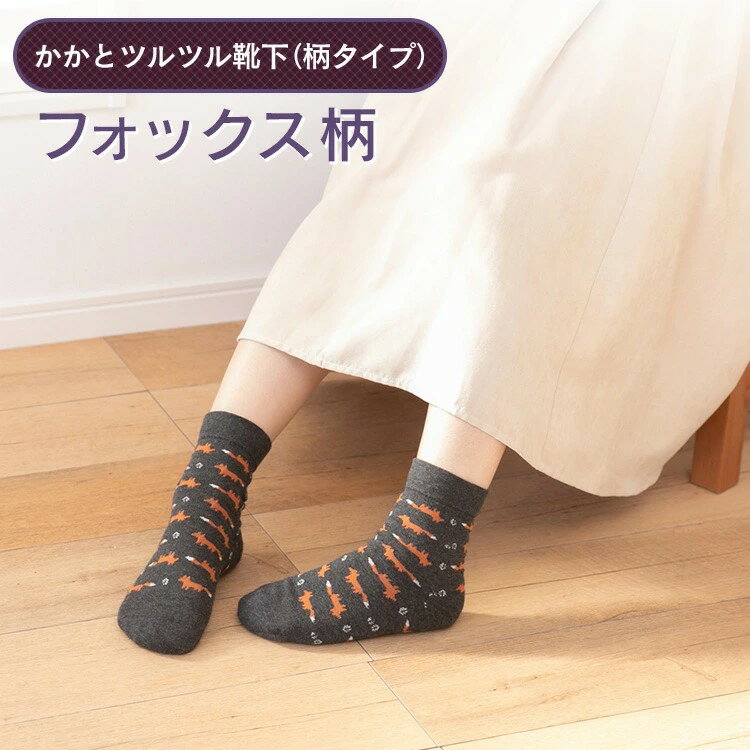 【かかとツルツル靴下 毛混】(フォックス柄)かかとクリームいらずあったか×安心×楽チンのかかとケア かかとつるつる かかとガサガサ かかとひび割れ かかと保湿 かかと角質除去 かかと靴下 冷え 【2足までメール便可】★658 太陽ニット