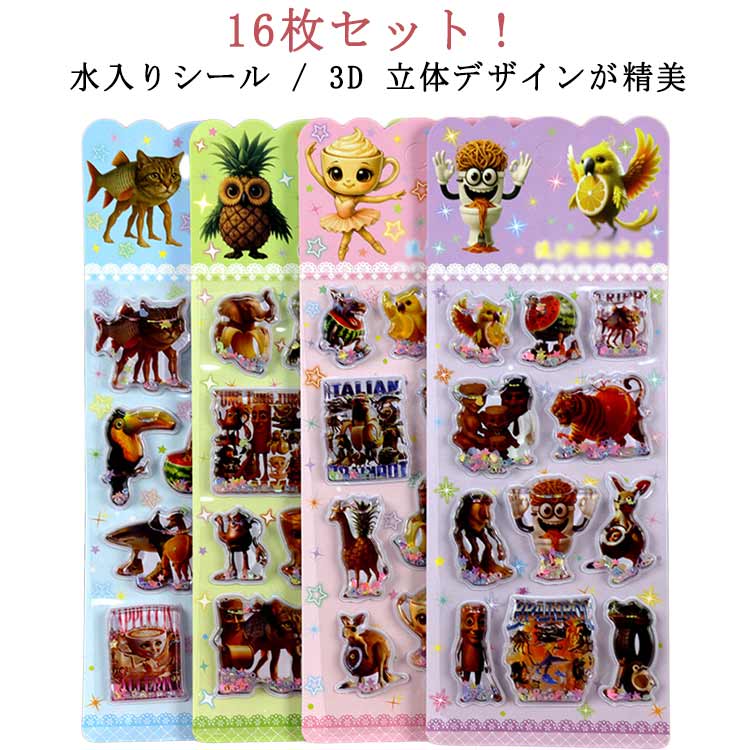 ウォーターシール キャラクター 動物 ぷくぷくシール ぷっくりシール ウォーターシール 水入りシール ぷっくりシール 16枚セット 大量 可愛い シール かわいい セット 送料無料 ボンボン ドロップシール 子供 送料無料