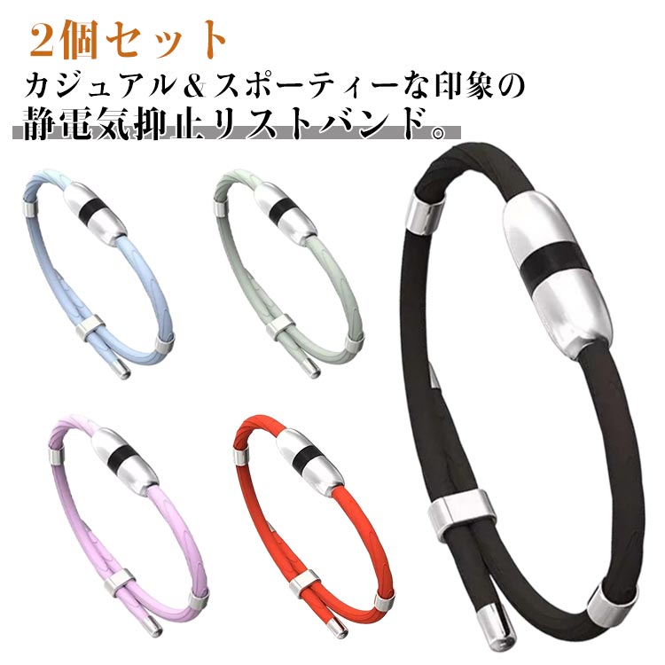 静電気除去ブレスレット 2個セット 電気 除去 メンズ レディース ノンパッチ 静電気抑制 リストバンド ブレスレット 帯電防止 チェーン シリコン 金属導体 放電 静電気対策 静電気除去グッズ ギフト プレゼント グリーン ブルー ピンク レッド ブラック