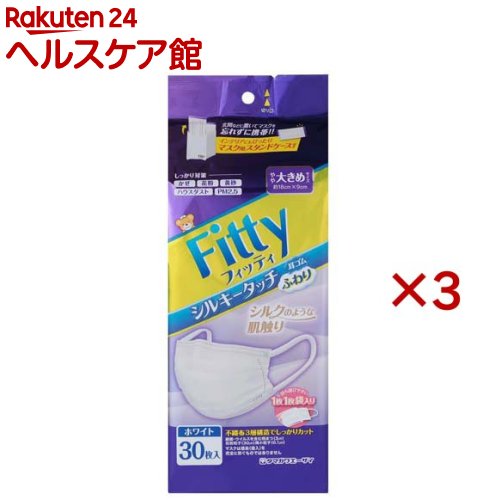 フィッティ シルキータッチ耳ゴムふわり やや大きめ ホワイト(30枚入×3セット)【フィッティ】
