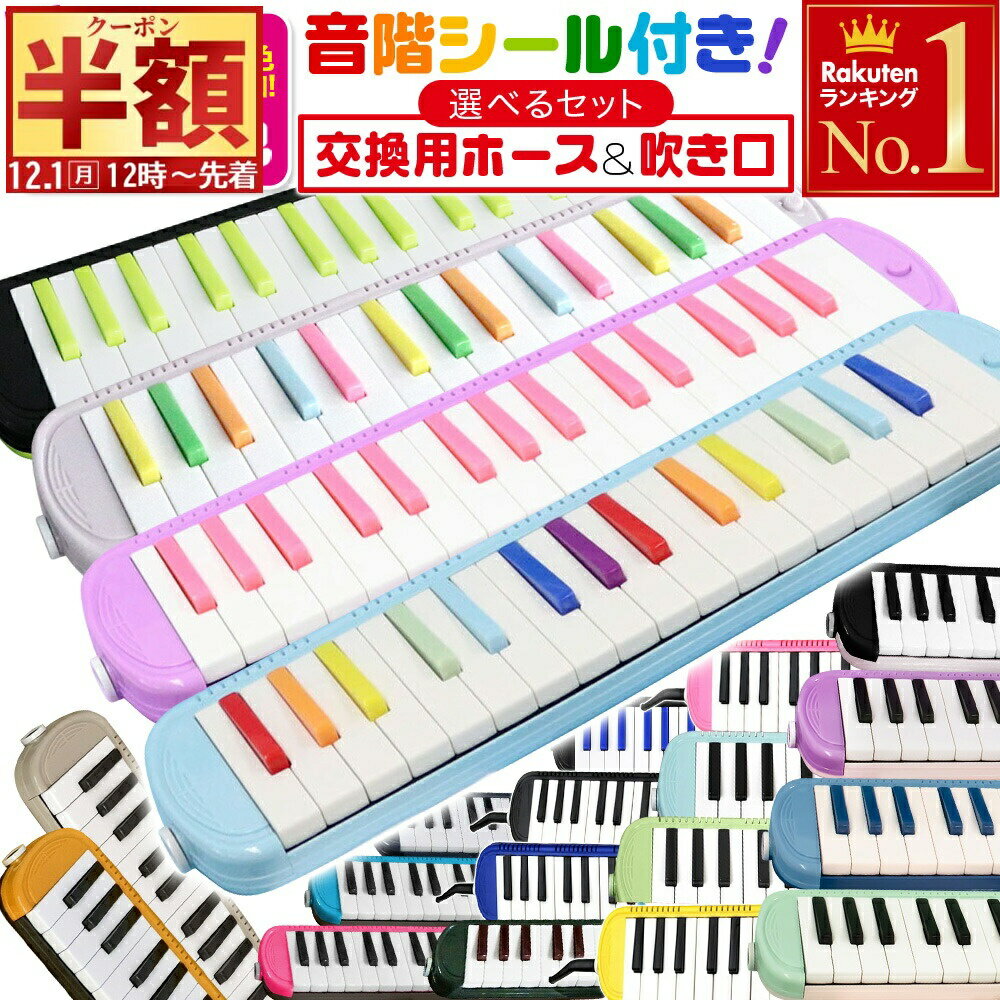 半 額 & 5%OFF★1日12時~ 学校 で使える! 【 5年保証 】 ケース付き 鍵盤ハーモニカ メロディーピアノ 21色 32鍵盤 P3001-32K ドレミファソラシール お名前シール おなまえシール ピアニカ 吹き口 ホース ドレミシール 卓奏 立奏 学校 入学 入園 プレゼントギフト送料無