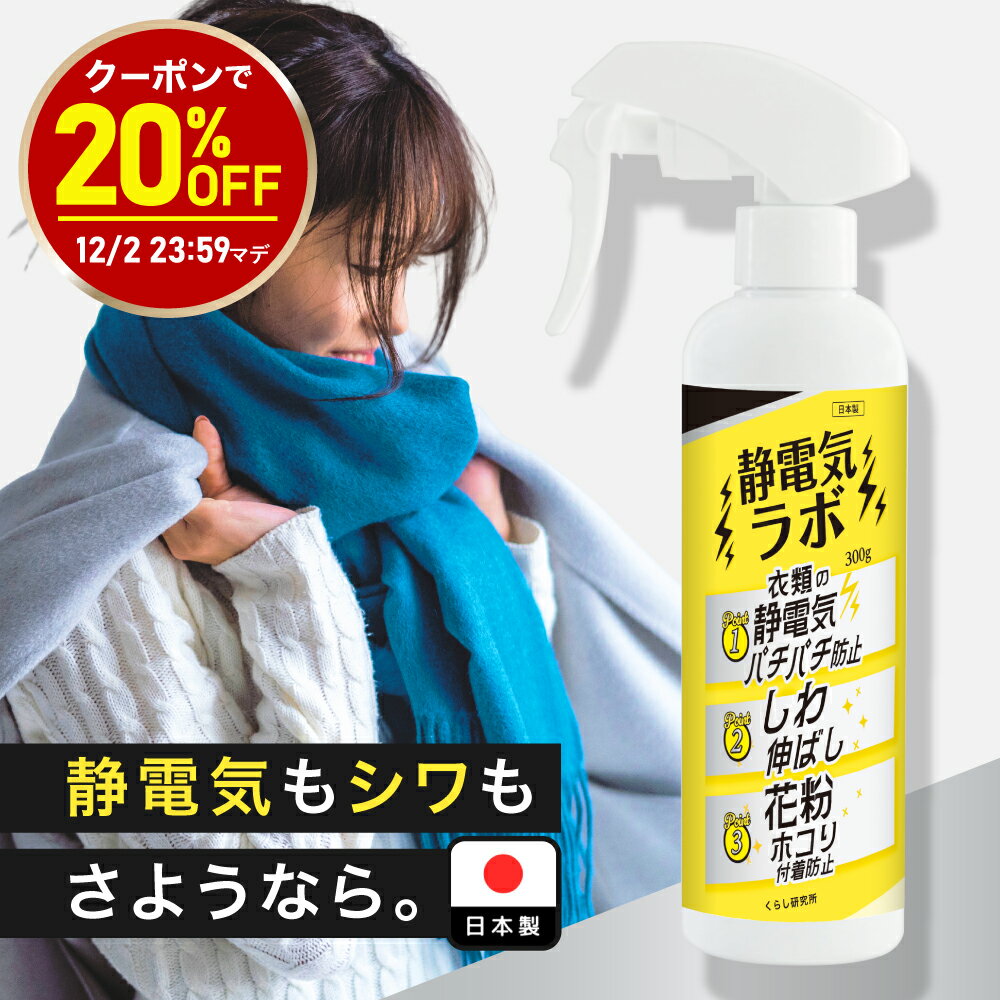 【フライングセール20%OFFクーポン】【返金保証付】静電気ラボ 静電気防止スプレー 静電気除去グッズ 花粉防止スプレー 300g 静電気除去 花粉静電気防止グッズ 静電気放電グッズ 静電気対策グッズ しわ伸ばし プロ用 衣類 車 ソファ カーテン スカート ドアノブ 冬 植物由来