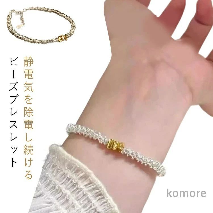 腕輪 シルバー 静電気防止 静電気除去グッズ ビーズ 上品 アクセサリー おしゃれ かわいい レディース 静電気抑制