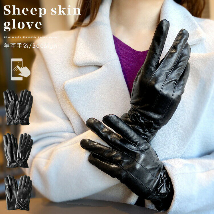 手袋 レディース 革 スマホ対応 防寒 秋冬 裏起毛 裏ボア かわいい 可愛い 暖かい グローブ 本革 シープスキン 羊革 シンプル リボン 女性 彼女 上品 ビジネス カジュアル 携帯 レディース手袋 ブラック 黒 【あす楽】 ab-ot006