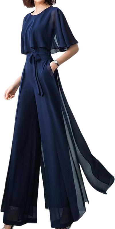 [ニーマンバイ] シフォン パンツスーツ レディース オケージョン 結婚式 入学式 卒業式 演奏会 セレモニー スーツ ネイビー ドレス