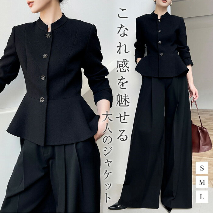 ジャケット ノーカラージャケット レディース 長袖 フレア 黒 無地 春 秋 冬 きれいめ 上品 エレガント ウエスト細見え 七五三 入学式 卒園式 卒業式 オケージョン 30代 40代 50代ブラック