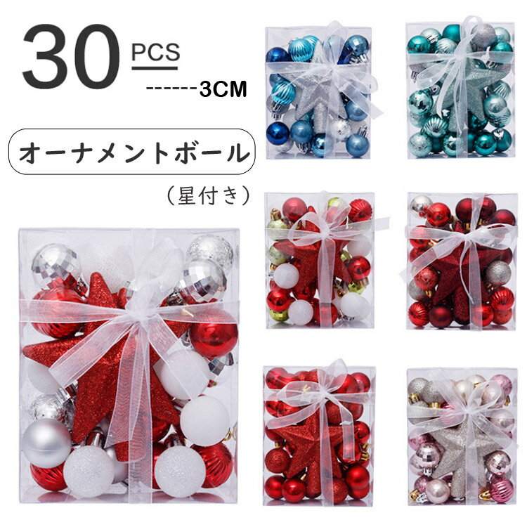 クリスマスオーナメント飾りボール北欧サンタパーティーおしゃれ装飾オーナメントボール星ツリートップセット30個レッドグリーンピンクゴールドシルバーホワイト白ブルー可愛いかわいい送料無料