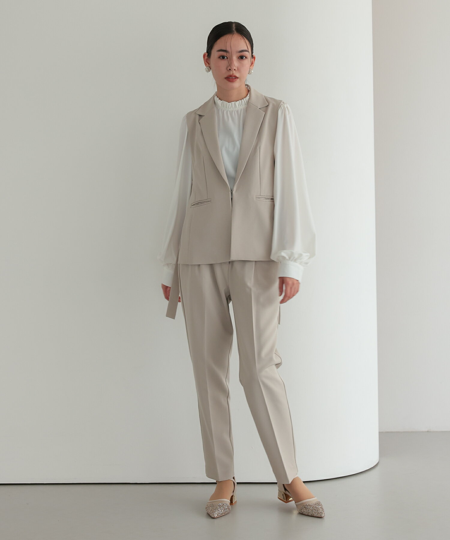ジレセットアップ レディース パンツスーツ パンツ ジレ セット 体型カバー きれいめ 上品 お呼ばれ 結婚式 入学式 卒業式 セレモニー オフィス おでかけ 着回し ベージュ ネイビー チャコール ブラック レディース 20代 30代 スタイルアップ セレモニースーツ ハレモード