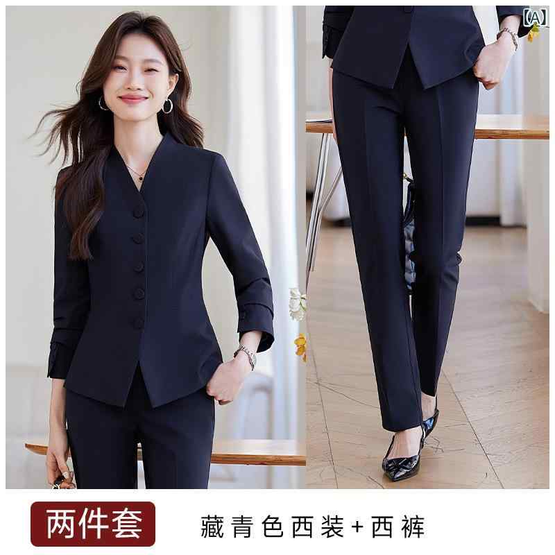 高級感 エレガント おしゃれ レディーススーツ2点セット 上下セット パンツスーツ ネイビー ブラック 2色 無地 送料無料 通勤スーツ ビジネススーツ フォマール 入学式 入園式 七五三 キャリア セレモニースーツ 職場 オフィス OL 結婚式