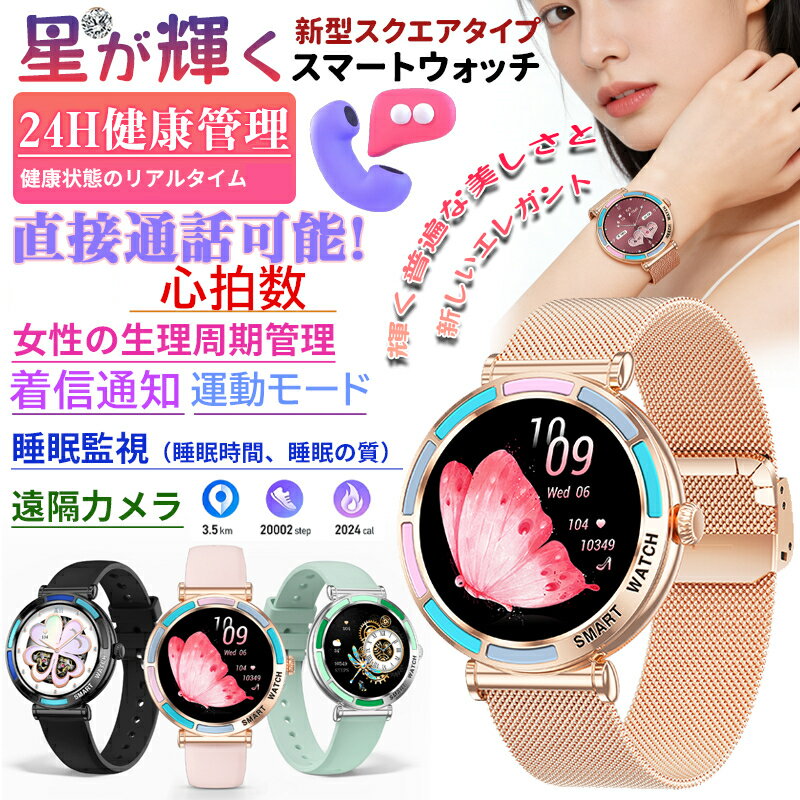 【選べる替えベルト&収納ケース特典】2026最新型 スマートウォッチ 日本製センサー 通話機能 iPhone Android対応 レディース 24時間健康管理 心拍数 女性生理周期 着信通知 Bluetooth 日本語取説 smartwatch 高齢者