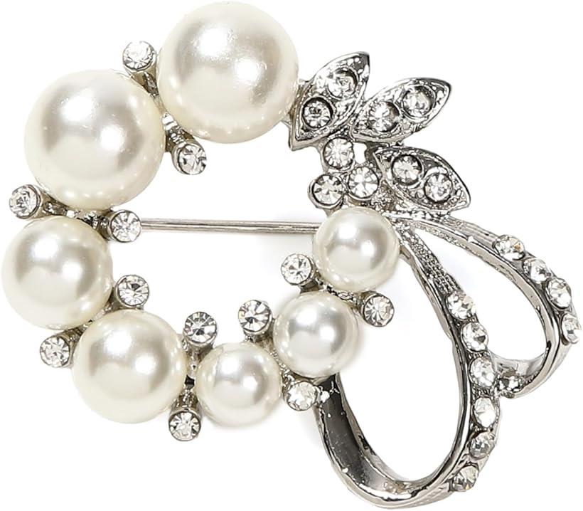 ティグロス ブローチ コサージュ パール 結婚式 卒業式 入学式 フラワー セレモニー フォーマル ジャケット スーツ ギフト 贈り物 お呼ばれ ドレス パーティー ピン クリップ 専用BOX付 シルバー (シルバー)