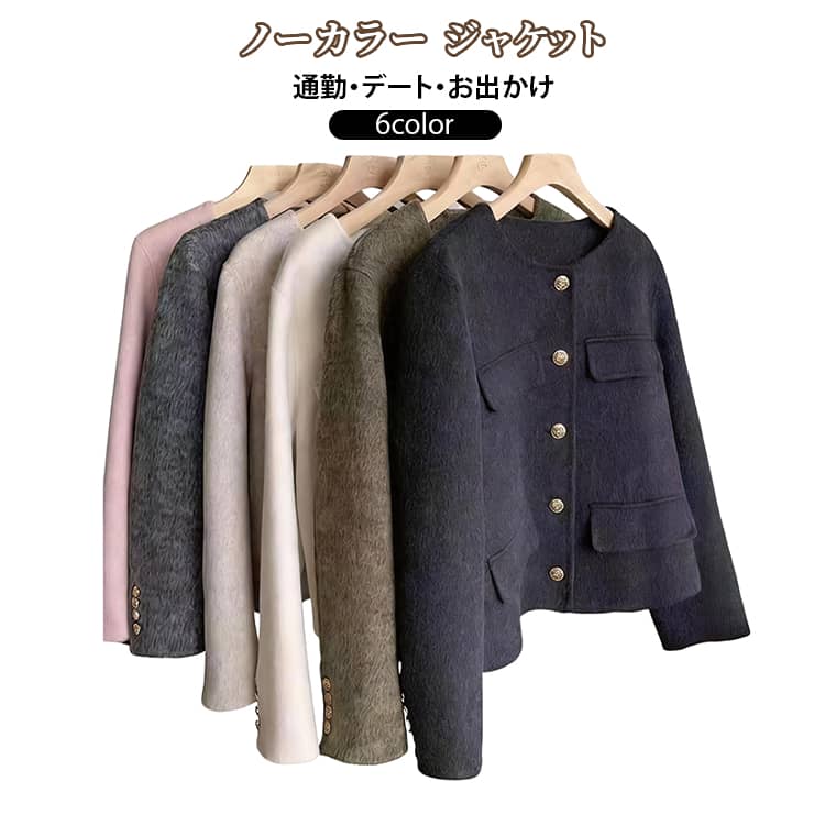 \超目玉商品/ツイードジャケット レディース 春コートアウター 秋服 大人韓国風 通勤OL オフィス 結婚式 入学式 卒業式 30代 50代 S-2XL 長袖ノーカラージャケット ショット丈ツイードコート