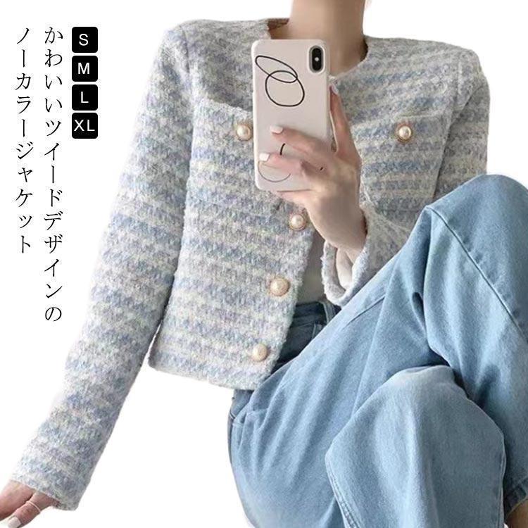 春アウター ノーカラージャケット ツイードジャケット 春秋 OL 入学式 きれいめ かわいい ショート丈 大人女性 大人女性 フォーマル 通勤 春コー