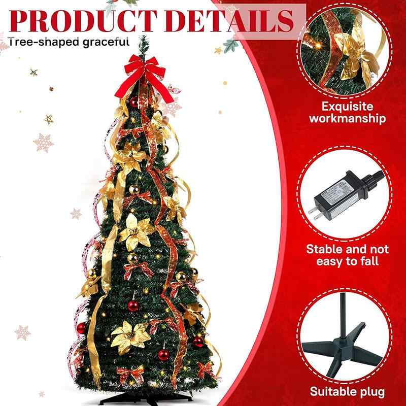 クリスマスツリー クリスマス デコレーション オーナメント セット レッド ゴールド 伸縮式 折りたたみ 組立簡単 高さ1.2m 1.5m 1.8m 2.1m