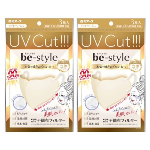 [ビースタイル] (2個セット) 白元アース UVカットマスク ライトベージュ 3枚入 立体タイプ