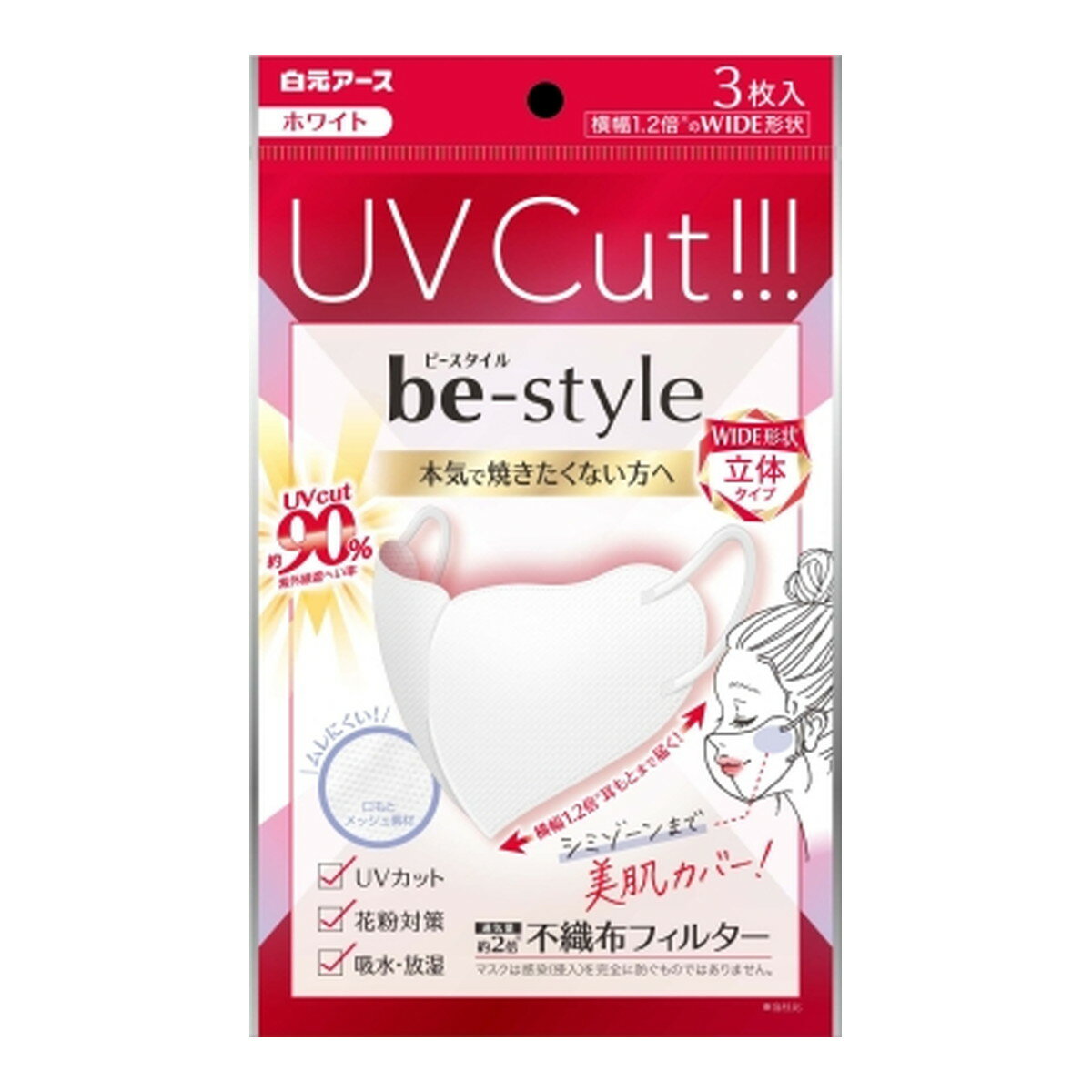 【あわせ買い2999円以上で送料お得】白元アース ビースタイル UVカットマスク ホワイト 3枚入 不織布フィルター