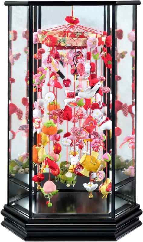 雛人形 吊るし飾り 六角ケース飾り ひまり-陽葵- 中サイズ つるし雛 つるし飾り 幅34cm×奥行24cm×高さ57cm 黒塗ケース