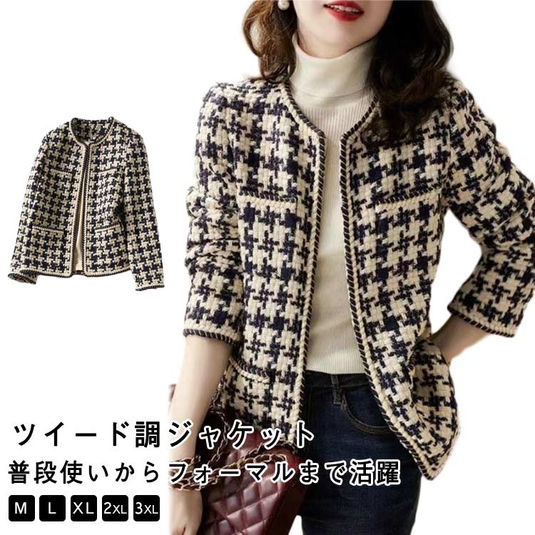 ツイード ジャケット レディース ノーカラージャケット ツイード アウター セレモニー 春 秋 冬 オフィスカジュアル カジュアル ショート丈 オフィス 入学式 入園式 卒園式 卒業式 20代 30代 40代 50代 謝恩会 七五三 パーティー