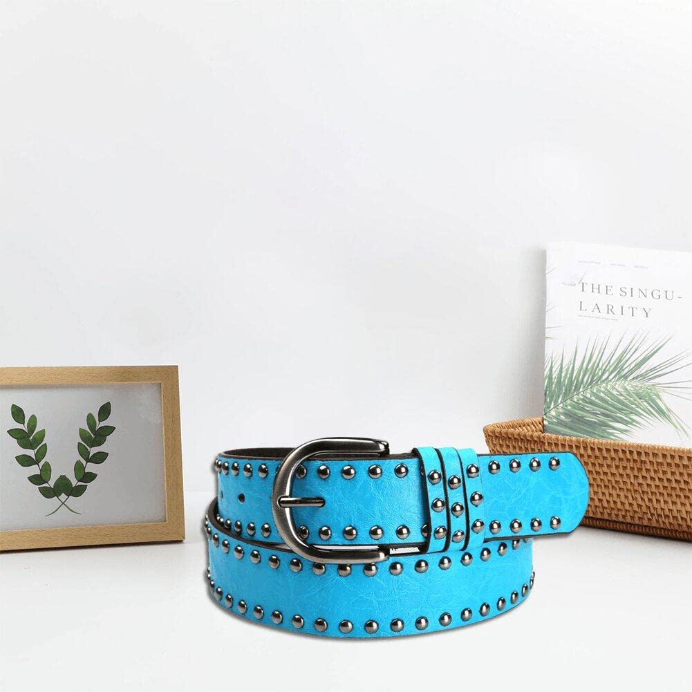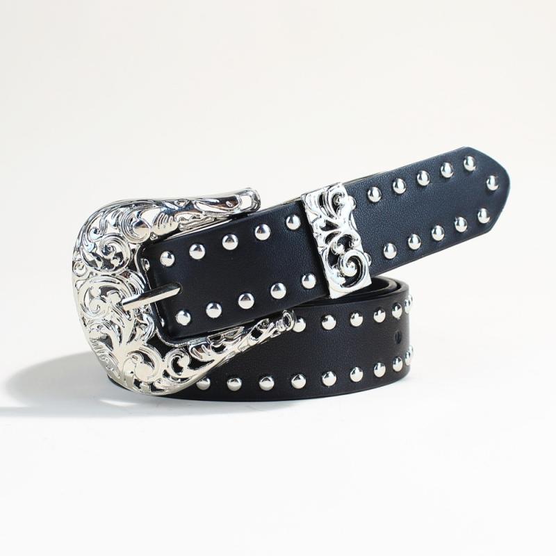 ベルト レディース スタッズ リベット パンクロック ストリート系 海外ファッション 欧米風 レトロ ヴィンテージ PUレザー 合皮 デニム ジーンズ カジュアルコーデ 普段使い おしゃれ ウエストマーク 黒 細ベルト 春夏