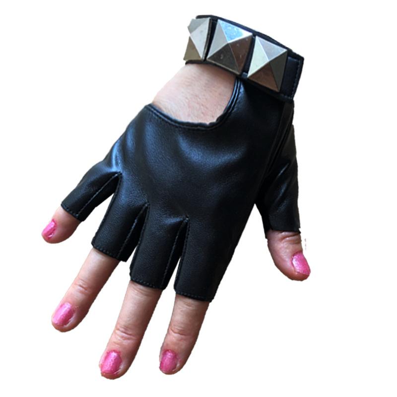 半指手袋 男女兼用 パンク ロック スタイル リベット スタッズ PUレザー グローブ ストリートダンス ポールダンス ステージ ナイトクラブ パフォーマンス用 黒(x2)