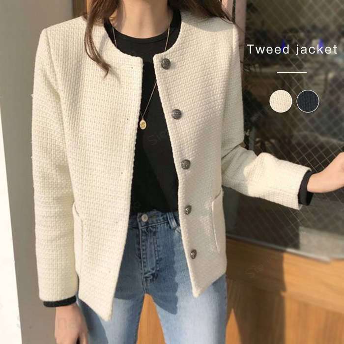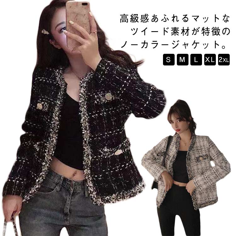 ジャケット ツイード レディース アウター ノーカラージャケット ツイードジャケット ノーカラー スーツ セレモニースーツ フォーマルスーツ ママスーツ 長袖 羽織 きれいめ 大きいサイズ 春 秋 冬 上品 エレガント ブラック アイボリー 20代 30代 40代 50代 春秋 秋冬