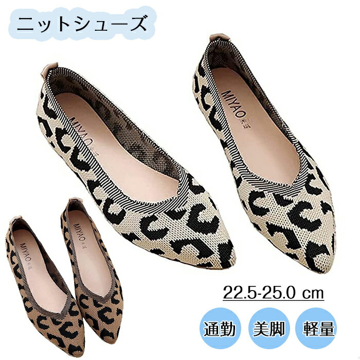 【店長おすすめ】パンプス ニット ニットシューズ レディース ヒョウ柄 ローヒールパンプス シューズ ローヒール フラットシューズ 通勤 オフィス レディース おしゃれ 美脚 カジュアル 痛くない 歩きやすい/疲れない 春夏秋 軽量